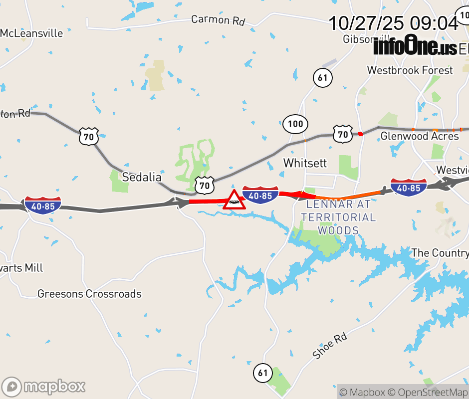 Canceled 10/27/25 9:22 AM Location: I-85S at MM 136, NC Vehicle Crash.