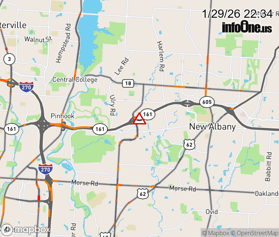 The left lane is blocked on SR-161 East beyond Hamilton Rd, due to a crash. ![]() |