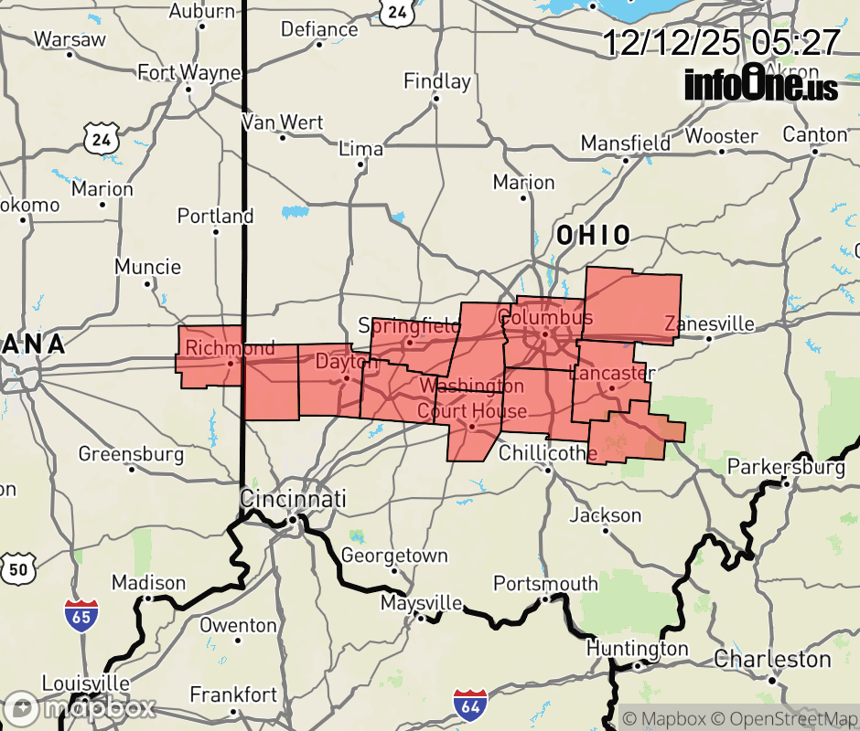 Canceled 12/12/25 9:05 AM Winter Storm Watch issued December 12 at 5:25AM EST until December 14 at 7:00AM EST by NWS Wilmington OH * WHAT... Heavy snow possible. Total snow accumulations between 4 and 6 inches possible. * WHERE... Portions of east central Indiana and central and west central Ohio. * WHEN... From Saturday morning through Sunday morning. * IMPACTS... Travel could be very difficult. ![]() |