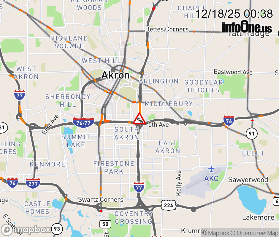All lanes are closed on SR-8 South at I-76, due to repairs/maintenance. ![]() |