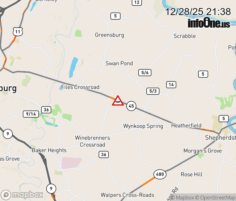 Vehicle Crash on WV-45 (4600 Shepherdstown Road). ![]() |