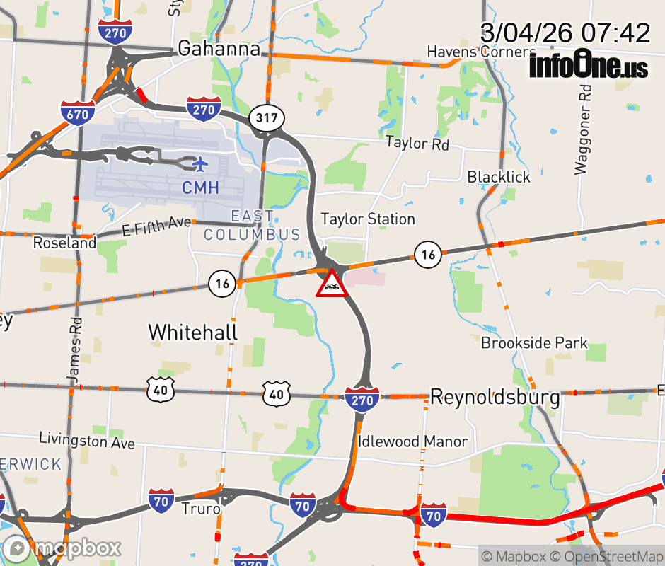 Expect lane closures on Ramp from OH-16 to I-270 S, due to a disabled vehicle. ![]() |