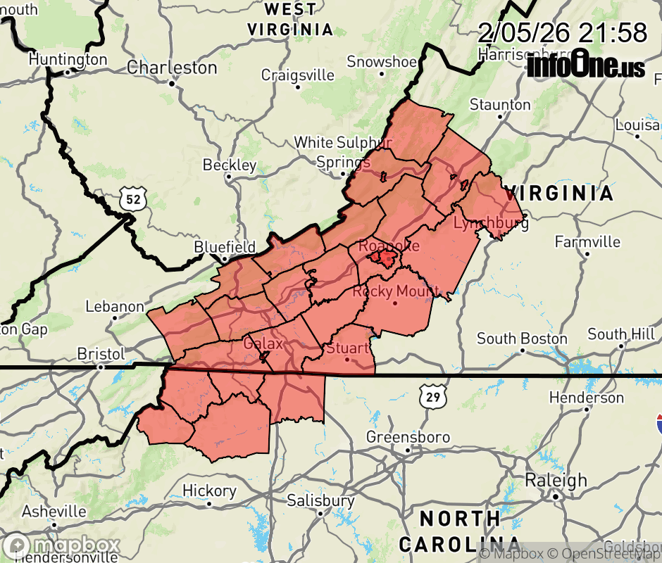 Canceled 2/6/26 1:21 AM High Wind Watch issued February 5 at 9:56PM EST until February 7 at 7:00PM EST by NWS Blacksburg VA * WHAT... Northwest winds 20 to 30 mph with gusts up to 60 mph possible. * WHERE... Portions of north central and northwest North Carolina and central, south central, southwest, and west central Virginia. * WHEN... From Friday evening through Saturday evening. * IMPACTS... Damaging winds could blow down trees and power lines. Power outages are possible. Travel could be difficult, especially for high profile vehicles. ![]() |