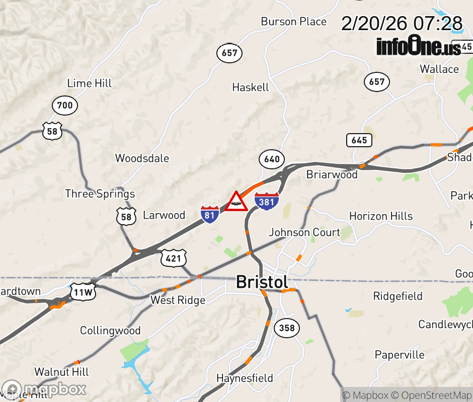On I-81 at mile marker 3 in the County of Washington, motorists can expect delays due to a vehicle crash. The north right shoulder is closed. Updated: Fri 2/20/26 7:28 AM EST ![]() Updated: Fri 2/20/26 7:28 AM EST |