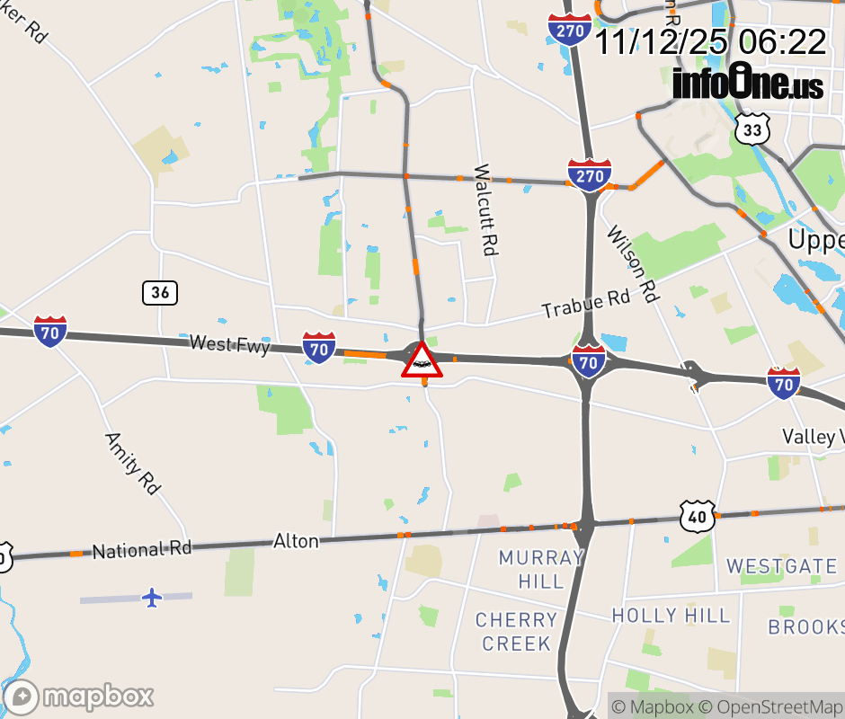 Ramp from Hilliard Rome Rd Southbound to I-70 E CLOSED, due to a crash. Use alternate route. Updated: Wed 11/12/25 6:22 AM EST ![]() |