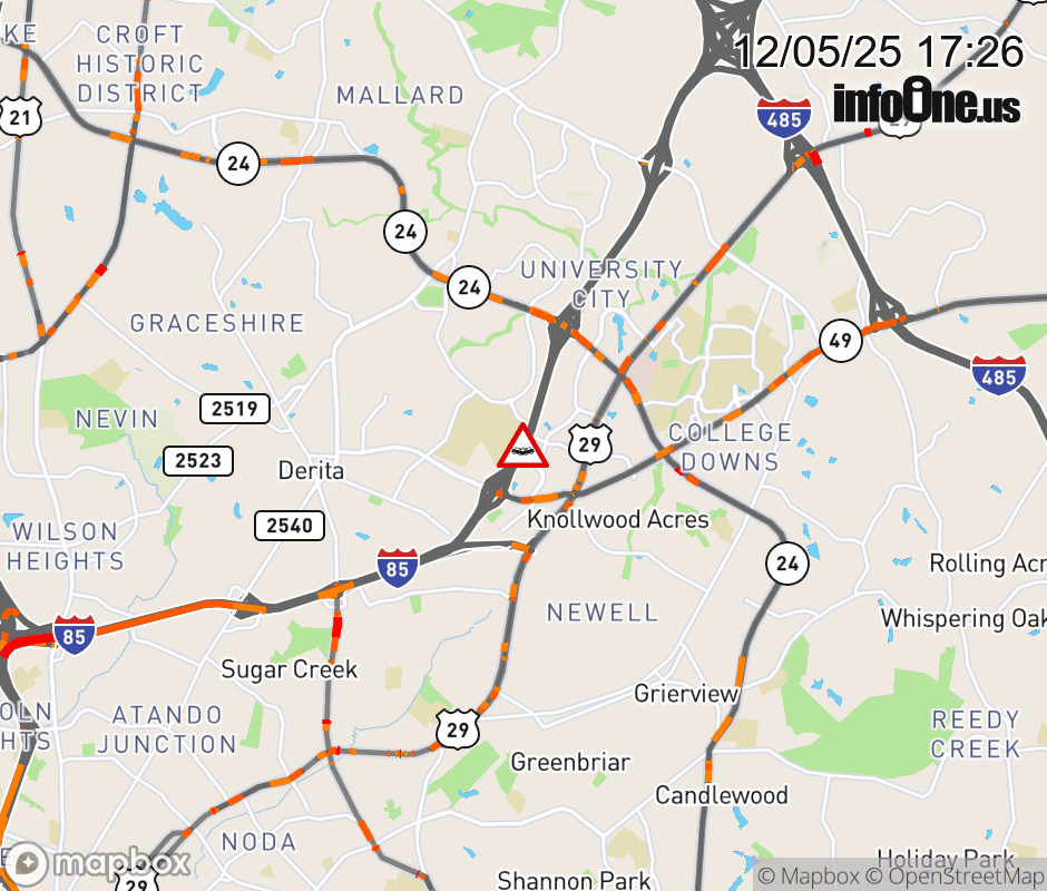 The left lane is closed prior to Exit 43 (University city Blvd.). ![]() |