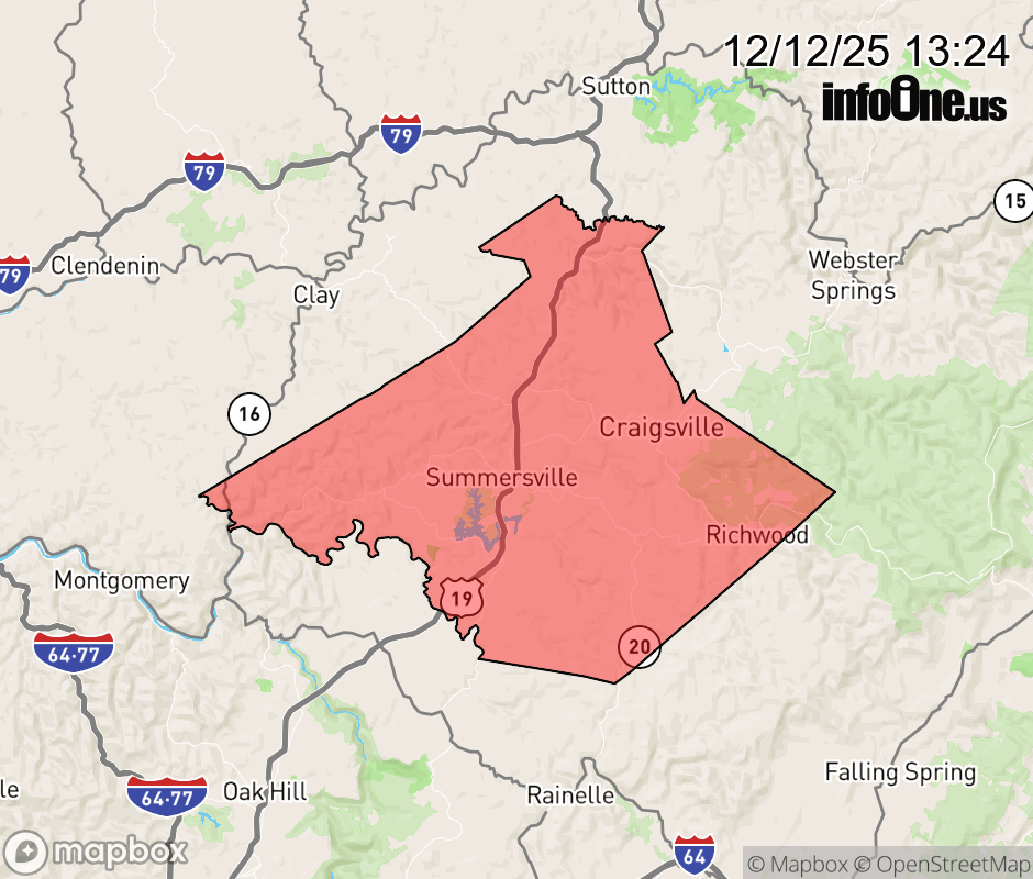 Canceled 12/12/25 9:32 PM Winter Storm Warning issued December 12 at 1:22PM EST until December 14 at 1:00PM EST by NWS Charleston WV * WHAT... Heavy snow expected. Total snow accumulations between 4 and 6 inches. * WHERE... Northwest Nicholas and Southeast Nicholas Counties. * WHEN... From 1 PM Saturday to 1 PM EST Sunday. * IMPACTS... Travel could be very difficult. ![]() |