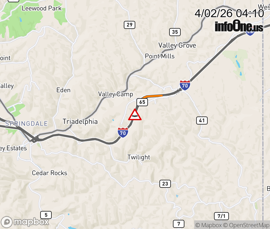 Canceled 4/2/26 8:40 AM Location: I-70 at MM 9.0, WV Accident.