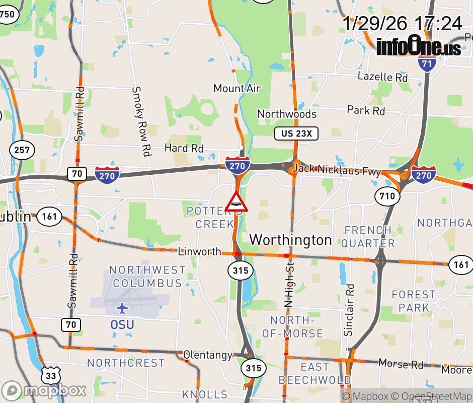 The left lane is blocked on SR-315 North at I-270 East, due to a crash. ![]() |