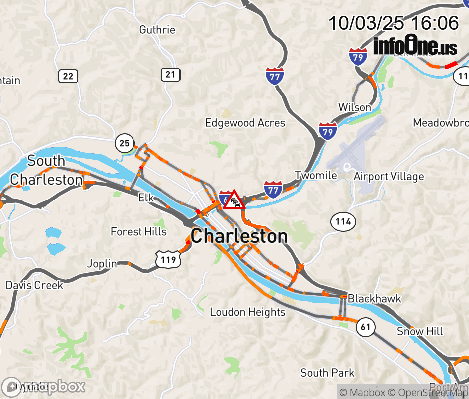In Kanawha County there is a Congestion-Delay on I-64W at Mile Marker 58.5. ![]() |