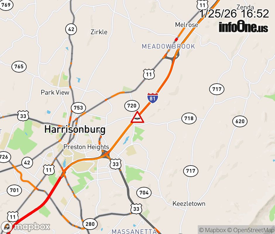 On I-81 at mile marker 249 in the County of Rockingham, motorists can expect delays due to a vehicle crash. The north left shoulder is closed. Updated: Sun 1/25/26 4:52 PM EST ![]() |