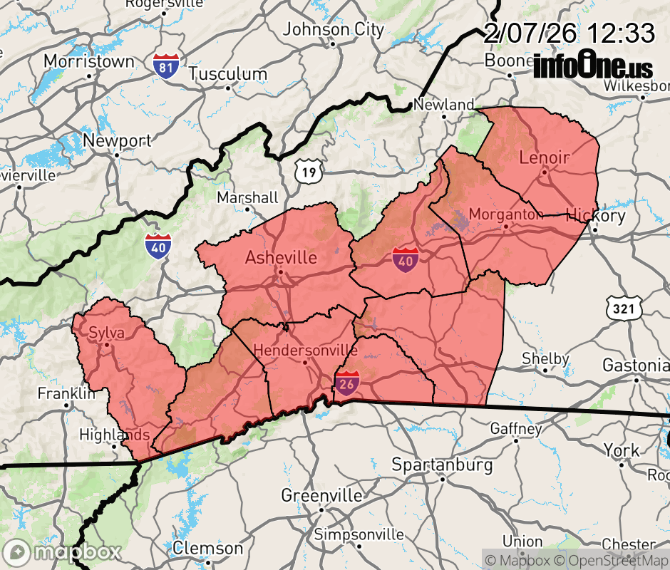 Canceled 2/7/26 3:55 PM High Wind Warning issued February 7 at 12:31PM EST until February 7 at 7:00PM EST by NWS Greenville-Spartanburg SC * WHAT... Northwest winds 15 to 25 mph with gusts up to 60 mph. * WHERE... Buncombe, Burke Mountains, Caldwell Mountains, Henderson, McDowell Mountains, Polk Mountains, Rutherford Mountains, Southern Jackson, and Transylvania Counties. * WHEN... Until 7 PM EST this evening. * IMPACTS... Damaging winds will blow down trees and power lines. Widespread power outages are expected. Travel will be difficult, especially for high profile vehicles. ![]() |