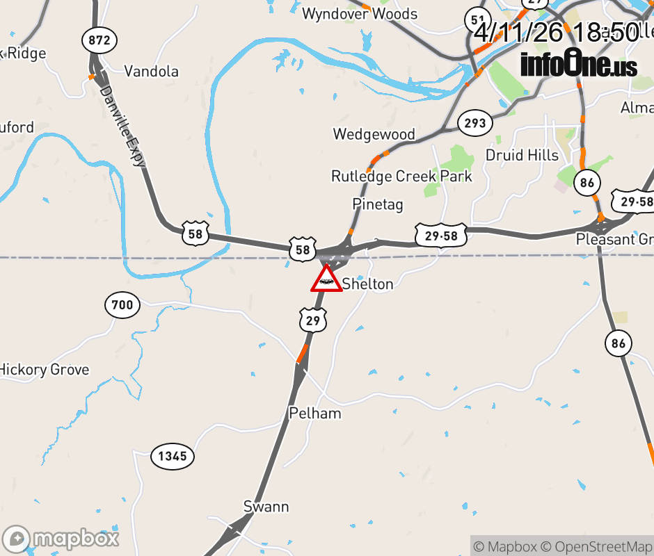 On US-29 in the County of Pittsylvania, in the vicinity of Rt. 9313E/W (Pittsylvania County), motorists can expect delays due to a vehicle crash. The north right lane and right shoulder are closed. ![]() |