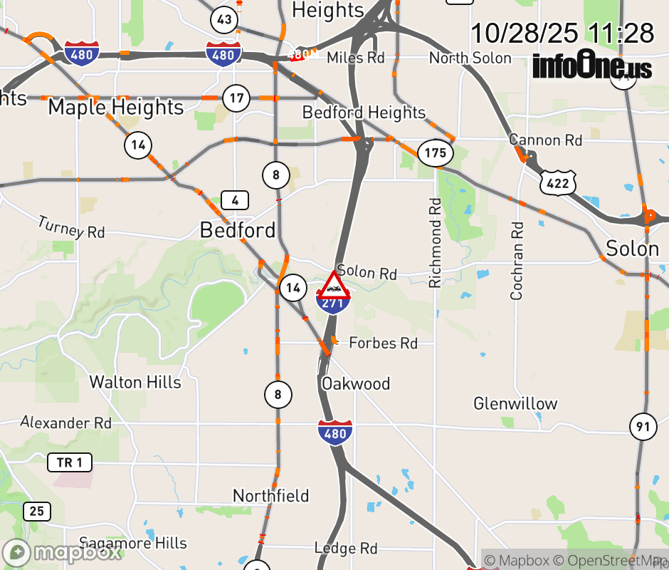 The right shoulder is blocked on I-271/I-480 South beyond I-480, due to a disabled vehicle. ![]() |