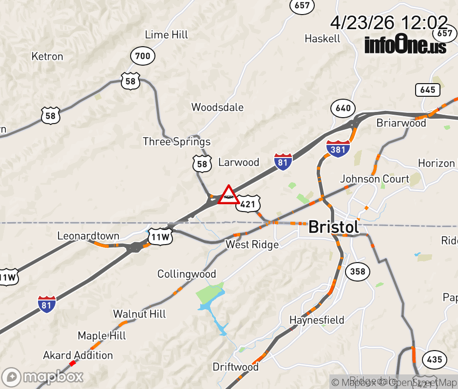 On I-81 at mile marker 1.2 in the County of Washington, motorists can expect delays due to a vehicle crash. The north right shoulder is closed. Updated: Thu 4/23/26 12:02 PM EDT ![]() Updated: Thu 4/23/26 12:02 PM EDT |