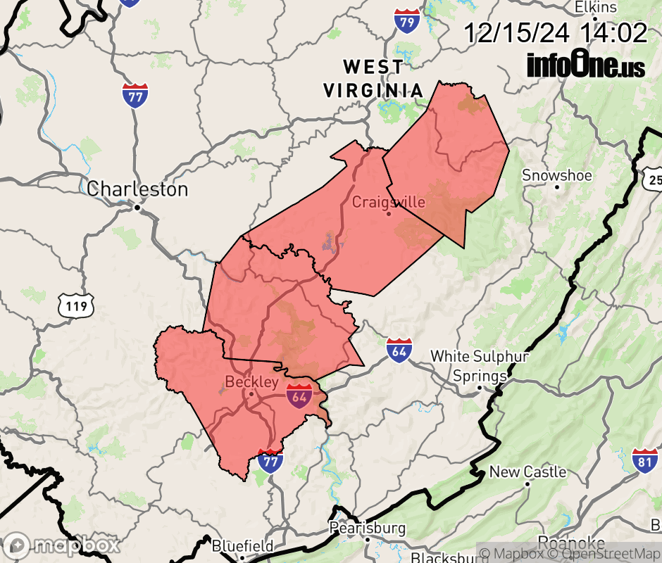 Canceled 12/15/24 6:07 PM Winter Weather Advisory issued December 15 at 2:00PM EST until December 15 at 7:00PM EST by NWS Charleston WV * WHAT... Freezing rain. Additional ice accumulations of a light glaze. * WHERE... Southeast Webster, Southeast Fayette, Southeast Nicholas, and Southeast Raleigh Counties. * WHEN... Until 7 PM EST this evening. * IMPACTS... Very slippery roads, and especially bridges, overpasses and sidewalks are possible. ![]() |