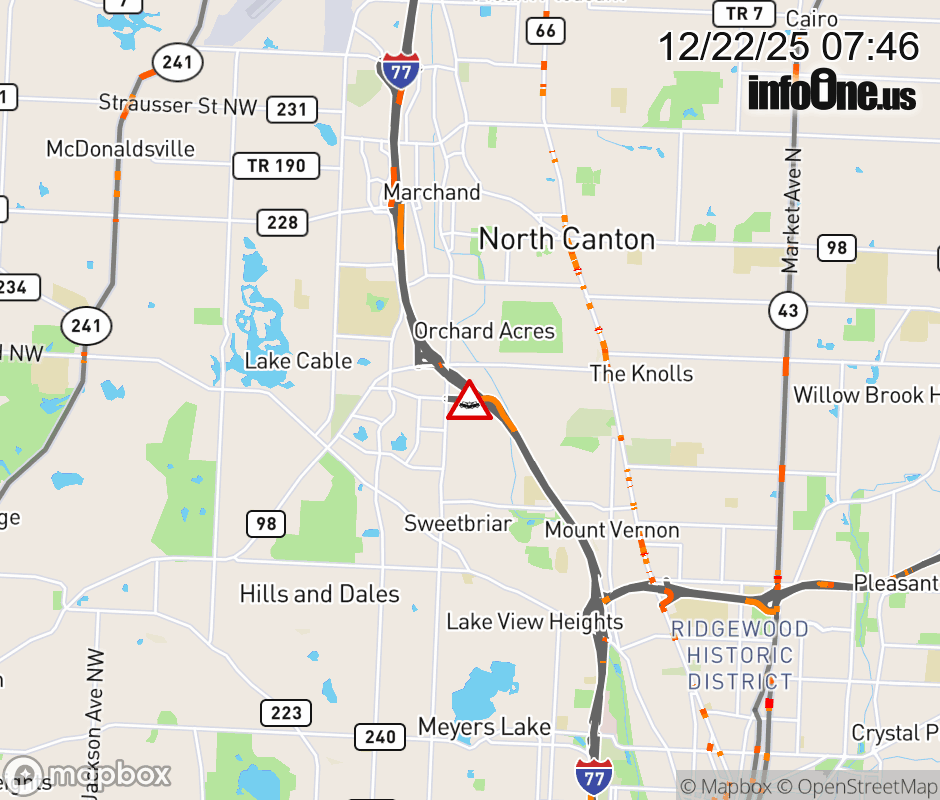 Expect lane closures on Ramp from I-77 N to Belden Village St NW, due to a crash. ![]() |