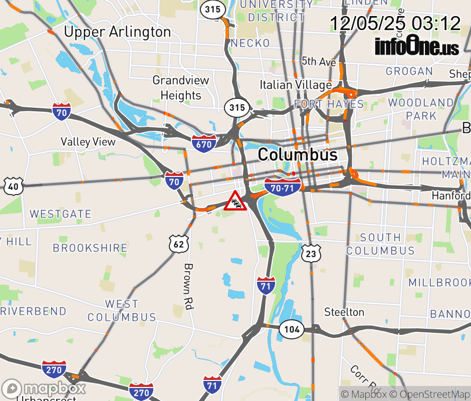 The left lane is blocked on I-70 West beyond Rich St/Town St, due to repairs/maintenance. ![]() |