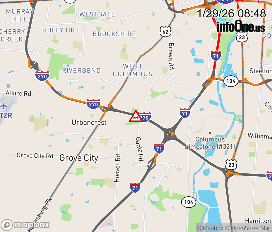 The right shoulder is blocked on I-270 East beyond US-62/SR-3, due to a disabled vehicle. ![]() |