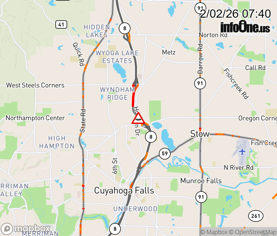 The 2 left lanes are blocked on SR-8 South at Graham Rd, due to a crash. Updated: Mon 2/2/26 7:40 AM EST ![]() Updated: Mon 2/2/26 7:40 AM EST |