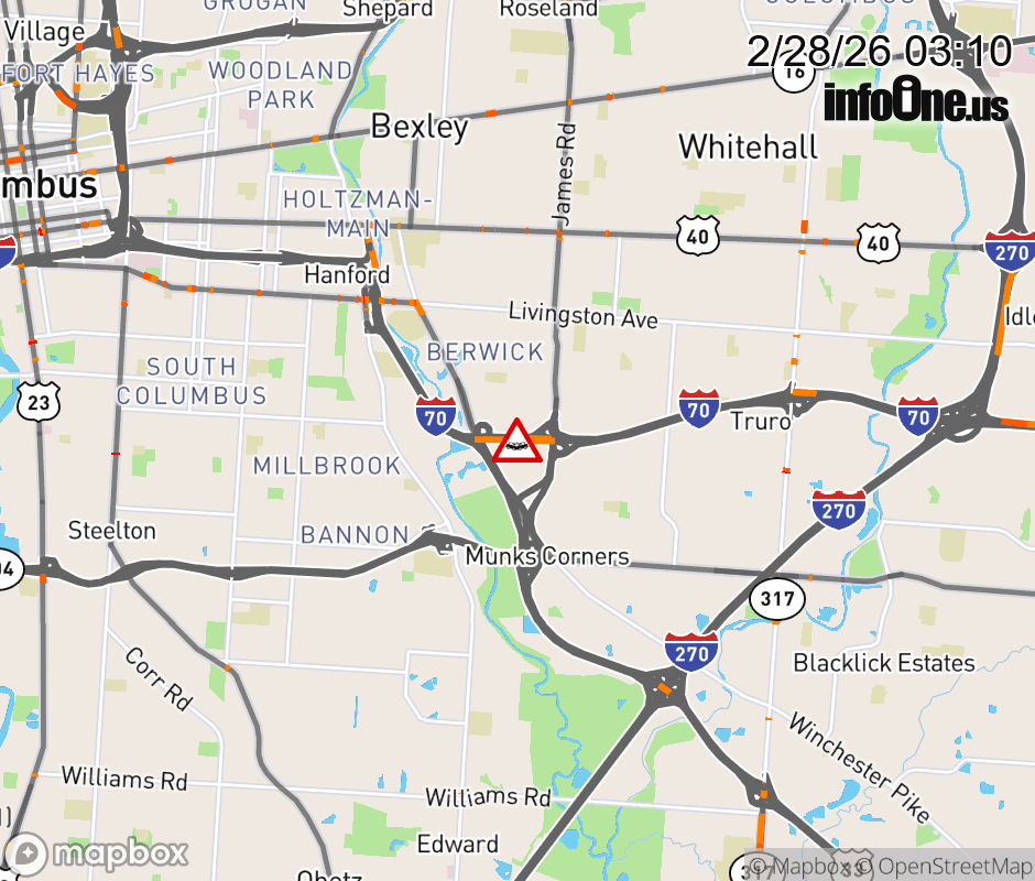 The left lane is blocked on I-70 East beyond US-33, due to a crash. Updated: Sat 2/28/26 3:10 AM EST ![]() Updated: Sat 2/28/26 3:10 AM EST |