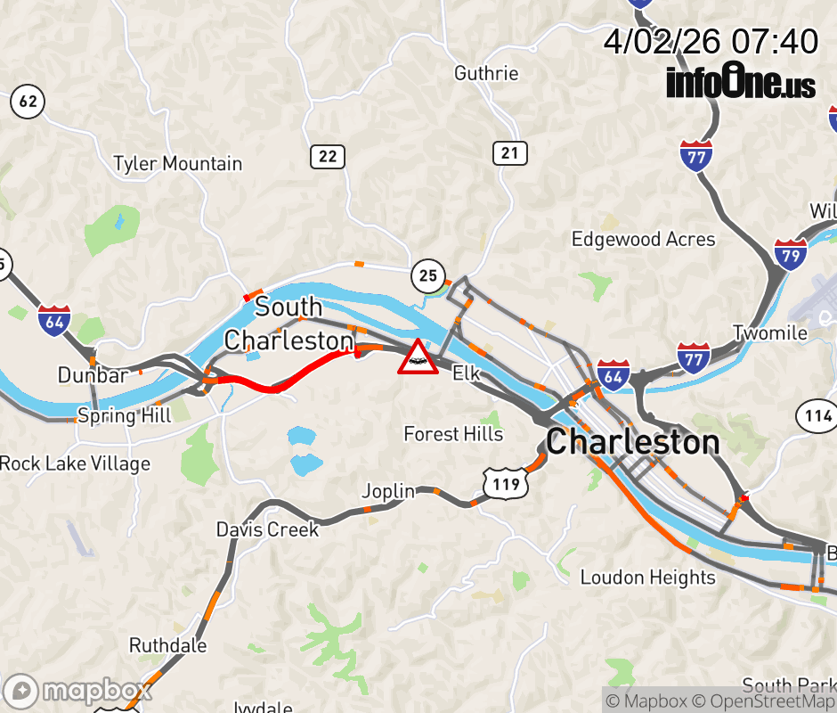 Vehicle Crash on I-64E at Mile Marker 56.0. The eastbound left lane is closed. Updated: Thu 4/2/26 7:40 AM EDT ![]() Updated: Thu 4/2/26 7:40 AM EDT |