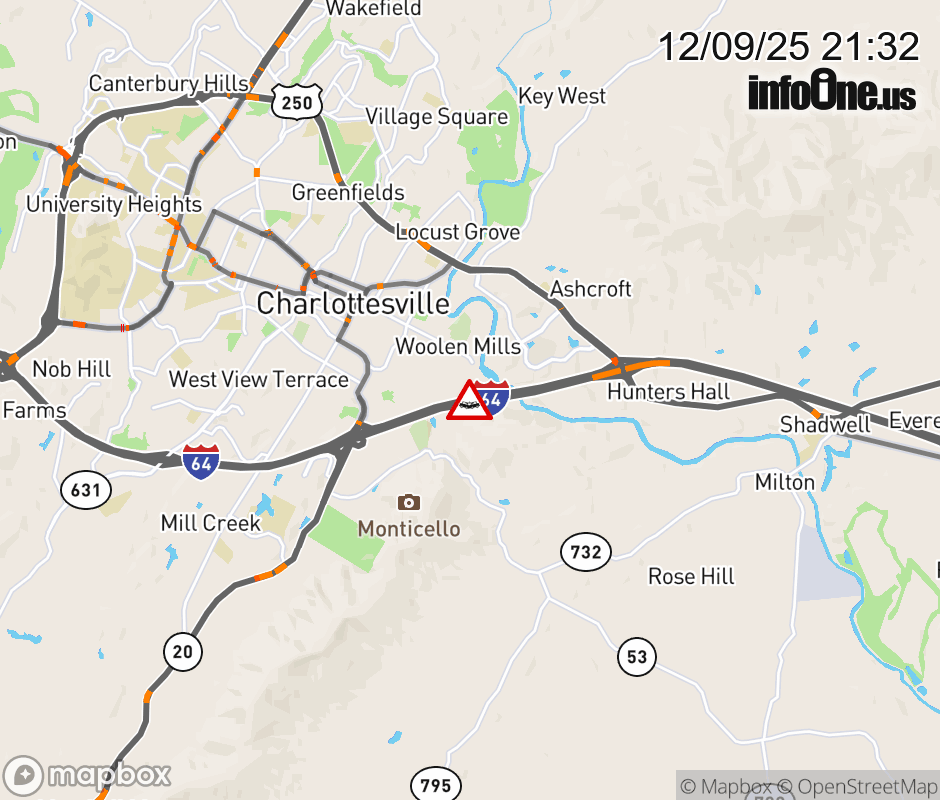 On I-64 at mile marker 123 in the County of Albemarle, motorists can expect delays due to a vehicle crash. The west left shoulder and left lane are closed. ![]() |