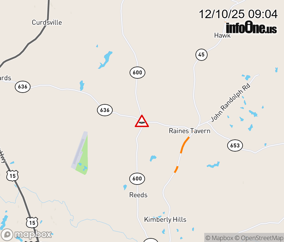 On Rt. 600 North in the County of Cumberland, in the vicinity of Raines Tavern Rd; Rt. 636E/W (Cumberland County), motorists can expect delays due to a vehicle crash. Lane closures exist. ![]() |