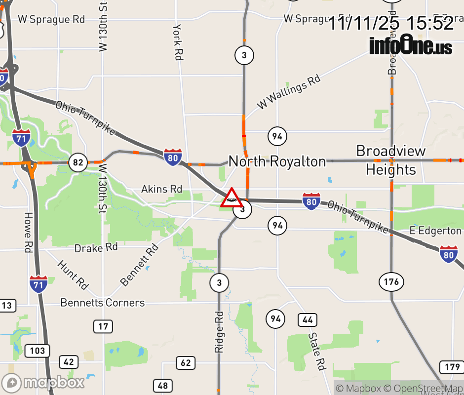 Expect lane closures on I-80 West (Ohio Turnpike) beyond I-77, due to a crash. ![]() |