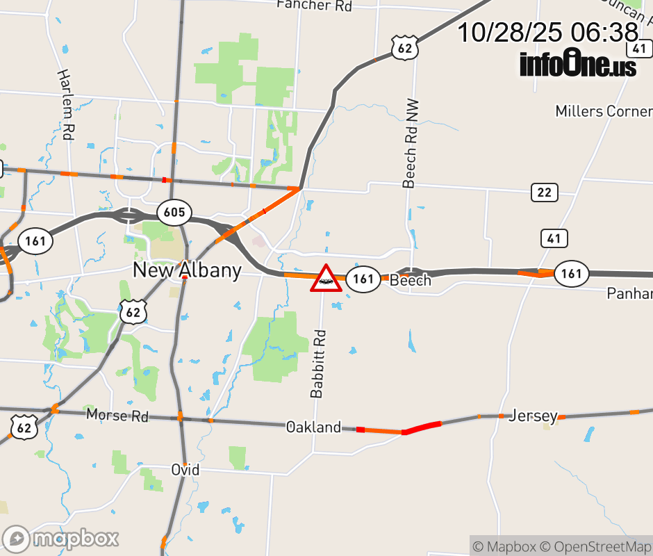 Expect lane closures on SR-161 East beyond US-62, due to a crash. ![]() |