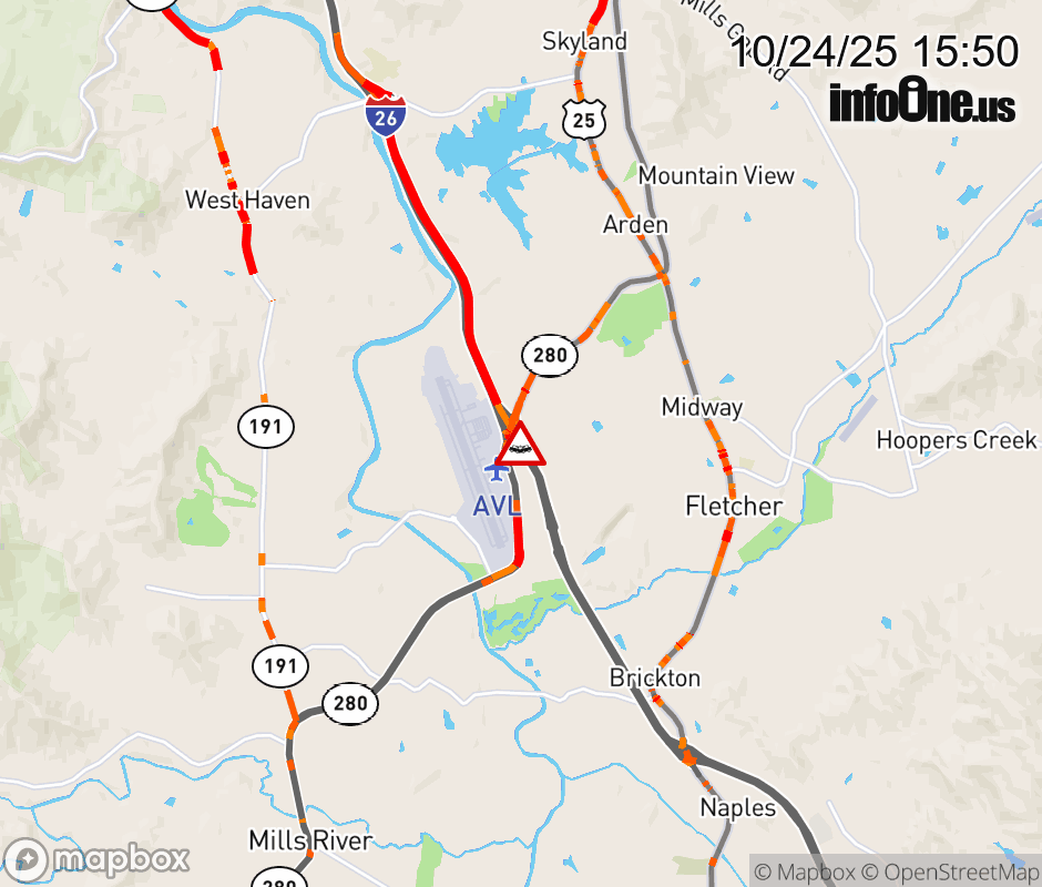The right shoulder is closed at Exit 40, NC 280 (Airport Rd). Updated: Fri 10/24/25 3:50 PM EDT ![]() Updated: Fri 10/24/25 3:50 PM EDT |