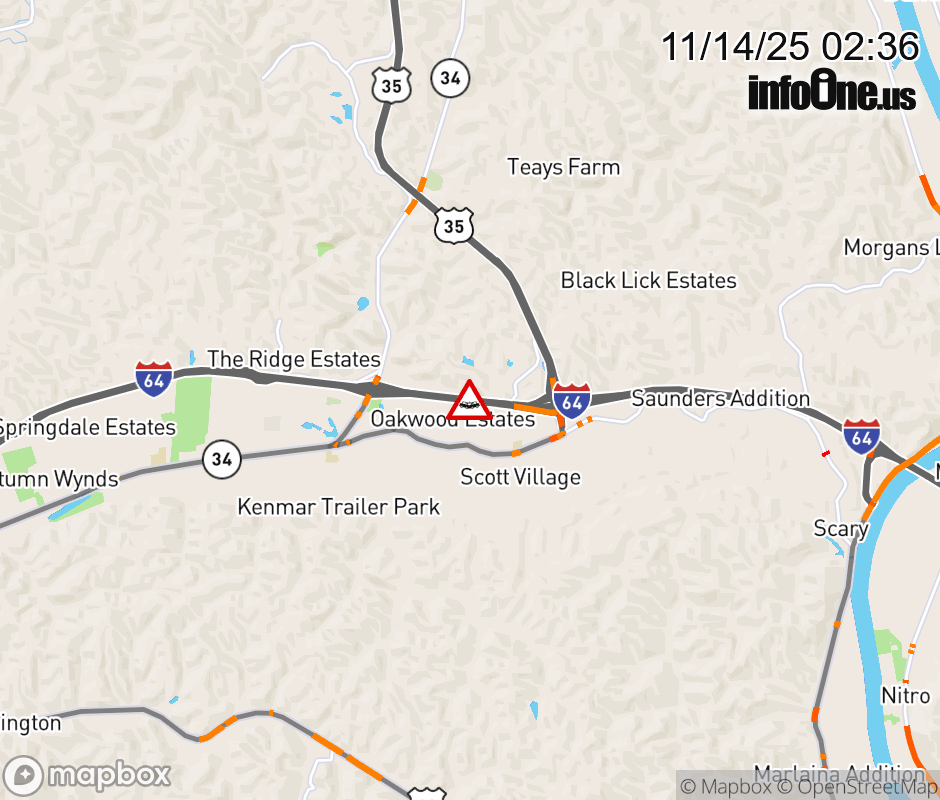 Canceled 11/14/25 4:02 AM Location: I-64 at MM 39.5, WV Accident.