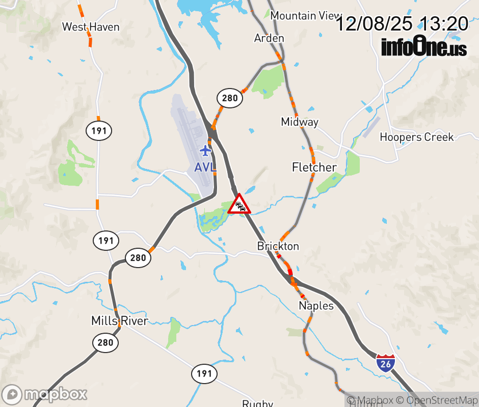 The right lane is closed two miles east of Exit 40, NC 280 (Airport Road). ![]() |