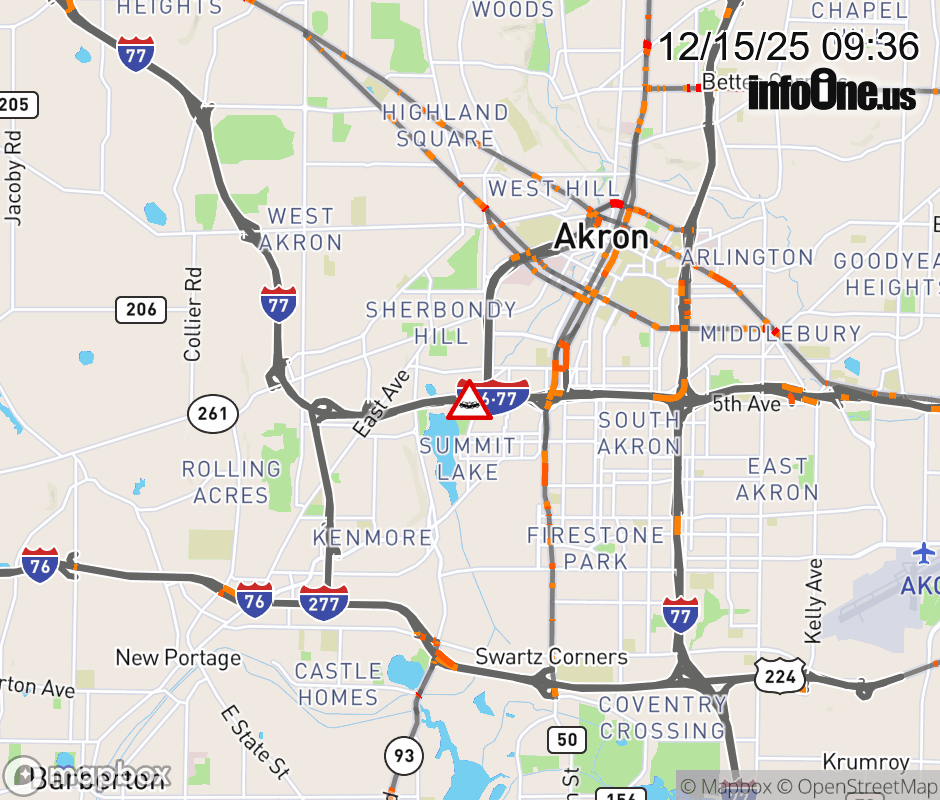 The right lane is blocked on I-76 East/I-77 South beyond SR-59/Downtown, due to a crash. ![]() |