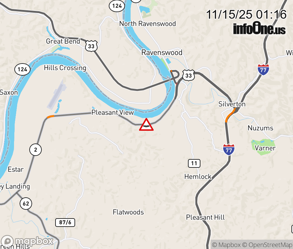 Vehicle Crash on WV 2 (3931 Point Pleasant Rd, Ravenswood). ![]() |