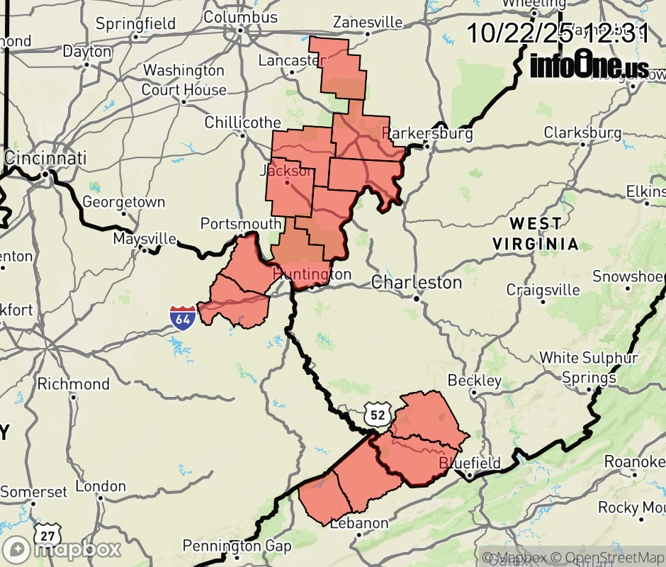 Canceled 10/22/25 7:41 PM Freeze Watch issued October 22 at 12:29PM EDT until October 24 at 9:00AM EDT by NWS Charleston WV * WHAT... Sub-freezing temperatures as low as 31 possible. * WHERE... Portions of northeast Kentucky, southeast Ohio, southwest Virginia, and southern West Virginia. * WHEN... From late Thursday night through Friday morning. * IMPACTS... Frost and freeze conditions could kill crops, other sensitive vegetation and possibly damage unprotected outdoor plumbing. ![]() |