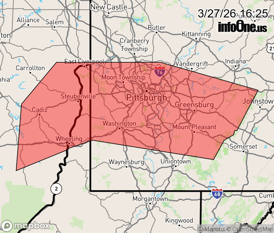 Canceled 3/27/26 4:30 PM Flood Warning issued March 27 at 4:23PM EDT until March 27 at 4:30PM EDT by NWS Pittsburgh PA The Flood Warning will expire at 430 PM EDT this afternoon for portions of east central Ohio, west central Pennsylvania, and the northern panhandle of West Virginia. Flood waters have or will continue to recede as the flooding threat dissipates. Please continue to heed remaining road closures. ![]() |