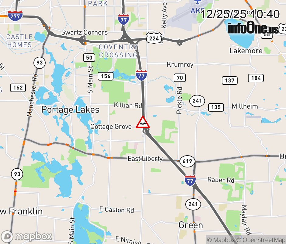 The right lane is blocked on I-77 South at Arlington Rd, due to a crash. Updated: Thu 12/25/25 10:40 AM EST ![]() Updated: Thu 12/25/25 10:40 AM EST |