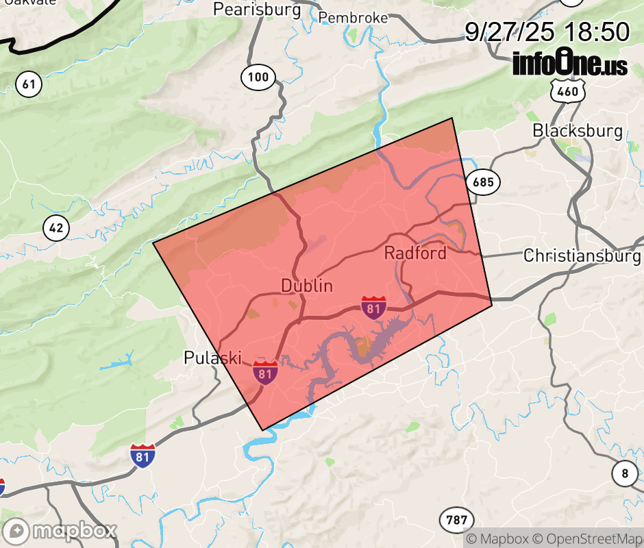 Canceled 9/27/25 8:53 PM Flash Flood Warning issued September 27 at 6:49PM EDT until September 27 at 10:45PM EDT by NWS Blacksburg VA FFWRNK The National Weather Service in Blacksburg has issued a * Flash Flood Warning for... West Central Montgomery County in southwestern Virginia... Central Pulaski County in southwestern Virginia... The City of Radford in southwestern Virginia... * Until 1045 PM EDT. * At 649 PM EDT, Doppler radar indicated thunderstorms producing heavy rain across the warned area. Up to 2 inches of rain have fallen since 6pm. The expected rainfall rate is 1 to 3 inches in 1 hour. Flash flooding is ongoing or expected to begin shortly. HAZARD...Flash flooding caused by thunderstorms. SOURCE...Radar. IMPACT...Flash flooding of small creeks and streams, urban areas, highways, streets and underpasses as well as other poor drainage and low-lying areas. * Some locations that will experience flash flooding include... Radford... Pulaski... Dublin... Claytor Lake State Park... Claytor Dam... Parrott... Fairlawn... This includes the following streams and drainages... Little River, New River, Back Creek, Crab Creek, Goose Creek, Carper Branch, Connellys Run, Dry Branch and Meadow Creek. ![]() |