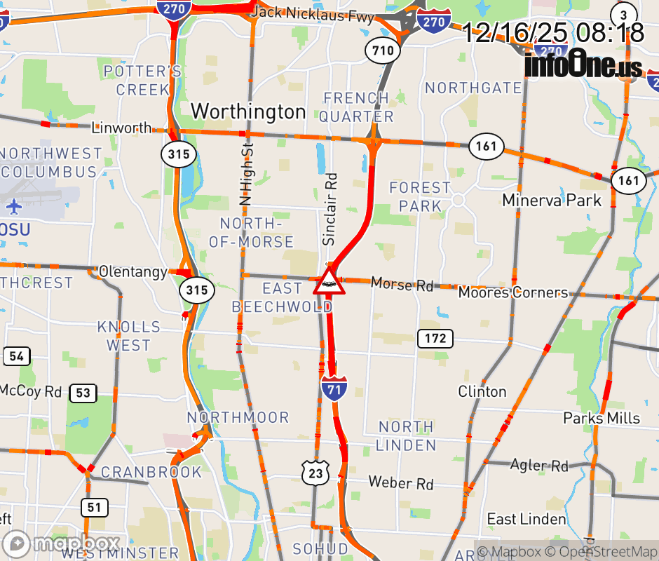 The right lane is blocked on I-71 South beyond Sinclair Rd/Morse Rd, due to a crash. ![]() |