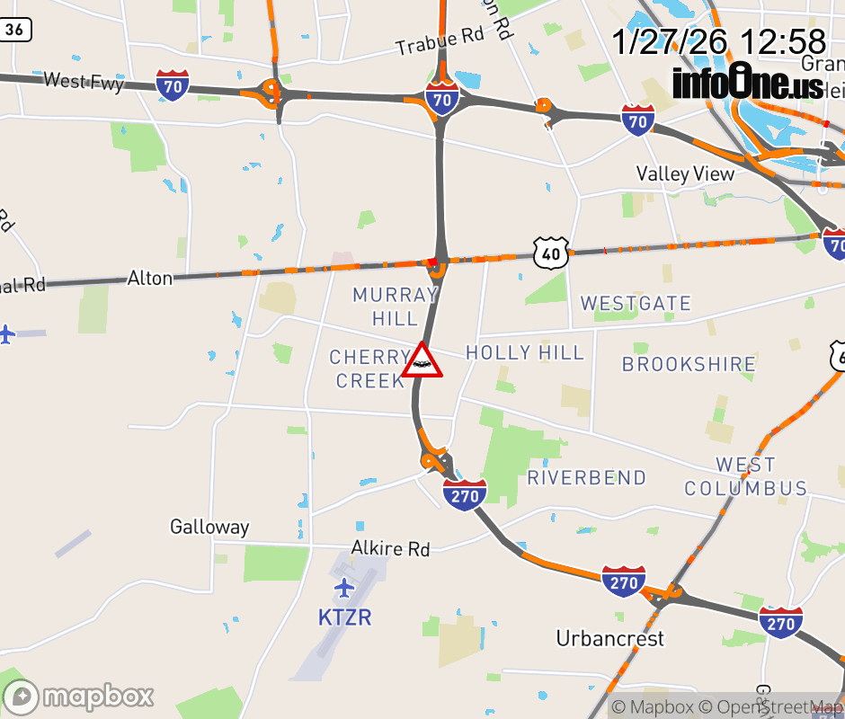 The left lane is blocked on I-270 North beyond Georgesville Rd, due to a crash. ![]() |