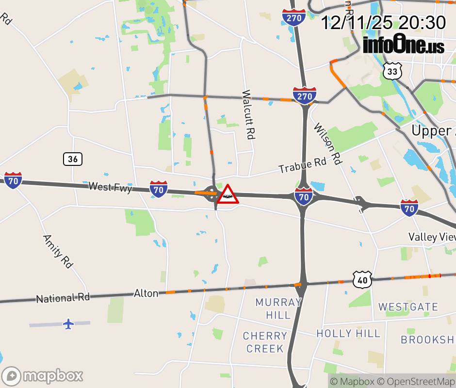 The left shoulder is blocked on I-70 West at Hilliard-Rome Rd North, due to a crash. Updated: Thu 12/11/25 8:30 PM EST ![]() Updated: Thu 12/11/25 8:30 PM EST |