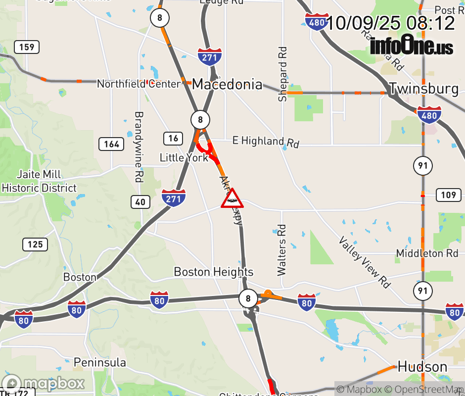 Expect lane closures on SR-8 North beyond I-80 (Ohio Turnpike), due to a crash. Updated: Thu 10/9/25 8:12 AM EDT ![]() |