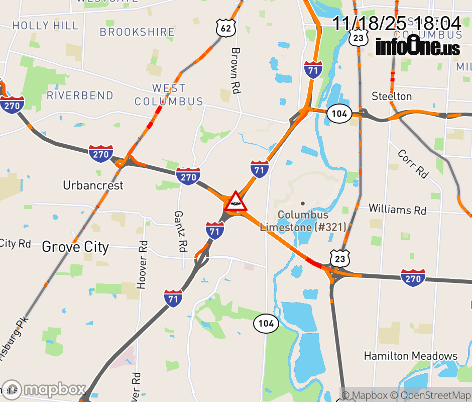 The right shoulder is blocked on I-71 South beyond I-270 (South Side), due to a crash. ![]() |