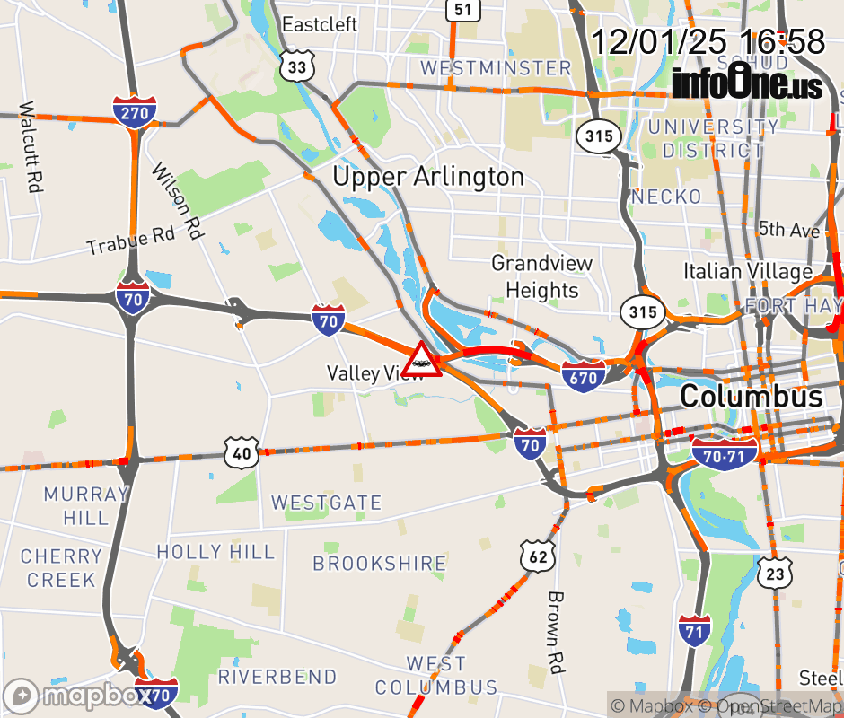 The right shoulder is closed on I-70 East at I-670 East, due to a crash. Updated: Mon 12/1/25 4:58 PM EST ![]() Updated: Mon 12/1/25 4:58 PM EST |