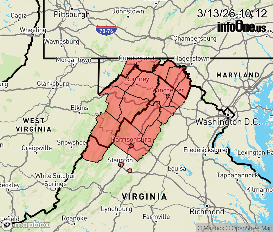 Canceled 3/13/26 1:11 PM Wind Advisory issued March 13 at 10:11AM EDT until March 13 at 8:00PM EDT by NWS Baltimore MD/Washington DC * WHAT... Southwest winds 15 to 25 mph with gusts up to 55 mph expected. * WHERE... Portions of western Maryland, northwest and western Virginia, and eastern and panhandle West Virginia. * WHEN... Until 8 PM EDT this evening. * IMPACTS... Gusty winds will blow around unsecured objects. Tree limbs could be blown down and a few power outages may result. ![]() |