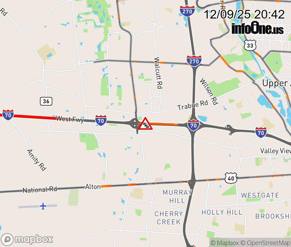The left lane is blocked on I-70 West at Hilliard-Rome Rd North, due to repairs/maintenance. Updated: Tue 12/9/25 8:42 PM EST ![]() Updated: Tue 12/9/25 8:42 PM EST |