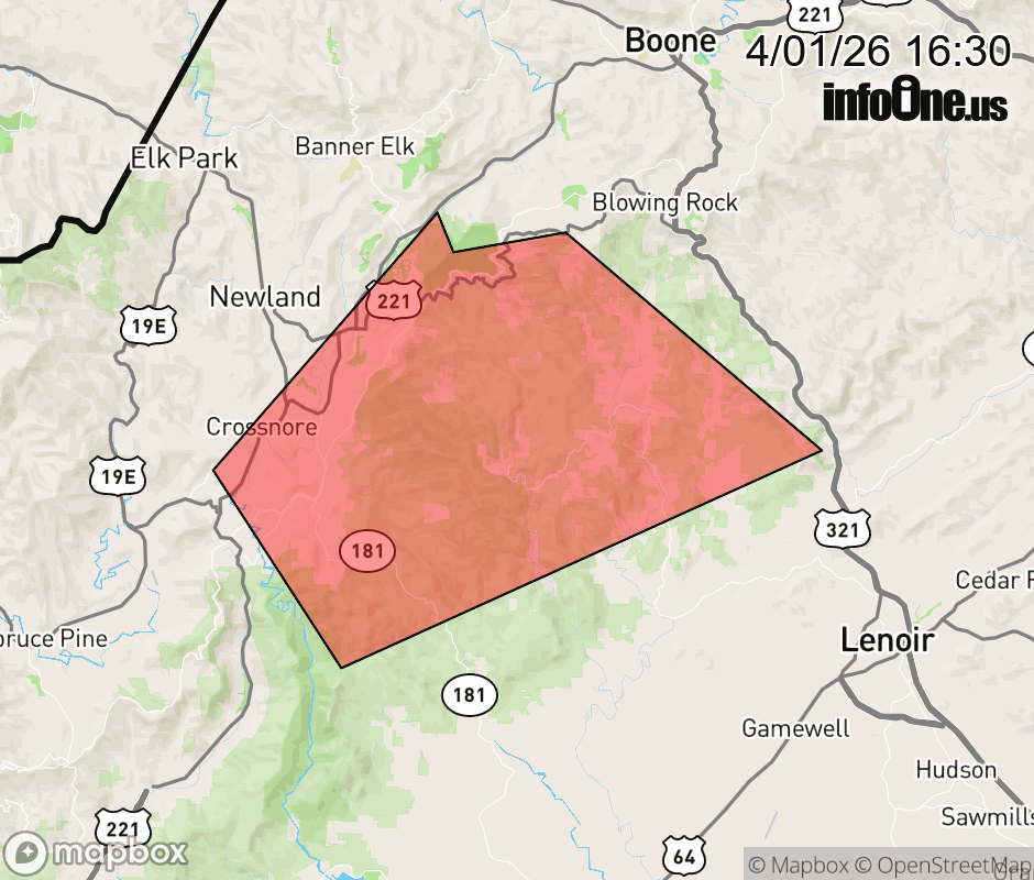 Canceled 4/1/26 5:15 PM Special Weather Statement issued April 1 at 4:29PM EDT by NWS Greenville-Spartanburg SC At 428 PM EDT, Doppler radar was tracking a strong thunderstorm 8 miles southeast of Newland, or 4 miles south of B.R. Parkway-Linville Falls To Grandfather, moving northeast at 15 mph. HAZARD...Wind gusts up to 40 mph and pea size hail. SOURCE...Radar indicated. IMPACT...Gusty winds could knock down tree limbs and blow around unsecured objects. Minor hail damage to outdoor objects is possible. Locations impacted include... Crossnore, Grandfather Mountain State Park, B.R. Parkway-Linville Falls To Grandfather, Linville Falls, Edgemont, Globe, Pineola, Upton, Linville, and Jonas Ridge. ![]() |