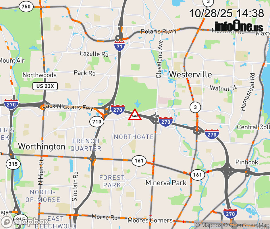 The center lane is blocked on I-270 East beyond I-71, due to a crash. ![]() |