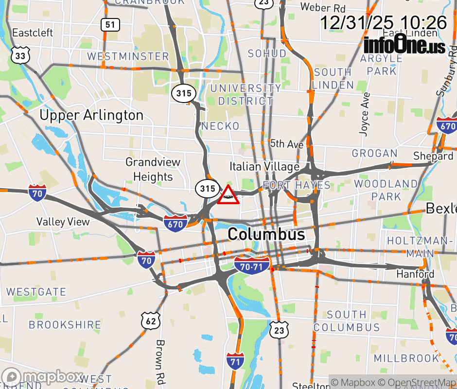 Expect lane closures on Ramp SR-315 South to I-670 East, due to a crash. ![]() |